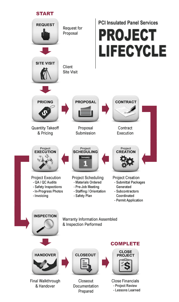 PCI develops a unique approach for your project. However, the backbone of our process is the Project Lifecycle. Below, we have illustrated our project management process from conception to completion. Our comprehensive lifecycle illustrates the attention to detail PCI applies to each project. We look forward to exceeding your expectations. Call us today at (863) 644-4738!